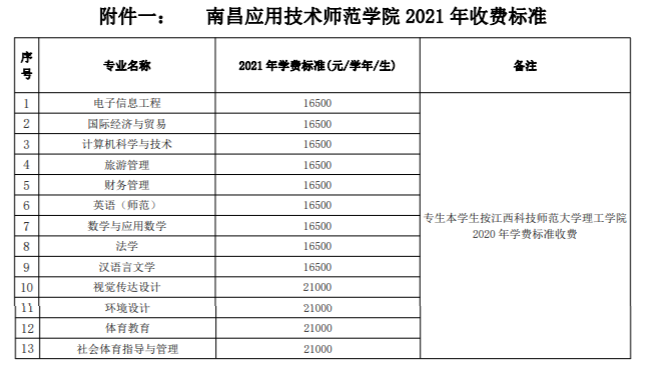 2021年南昌应用技术师范学院学费:普通类本科专业每生每学年16500元,艺术、体育类本科专业每生每学年21000元。