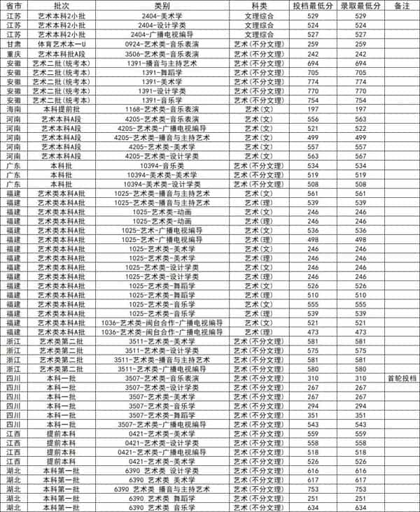 福建师范大学2019年艺术类本科招生录取分省分批次投档线