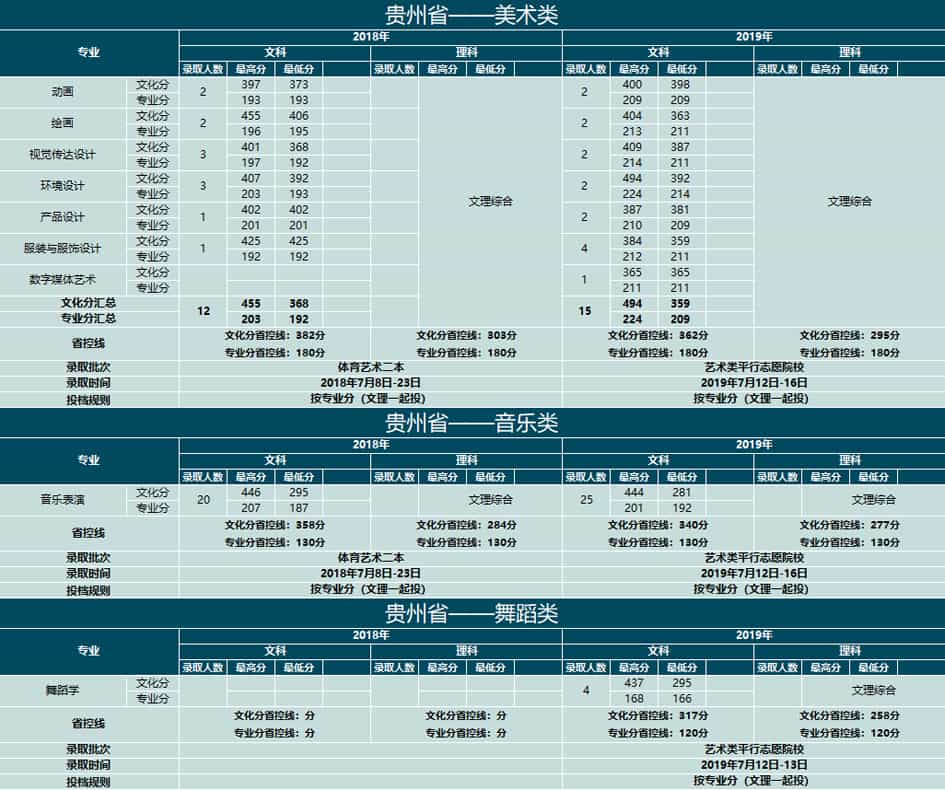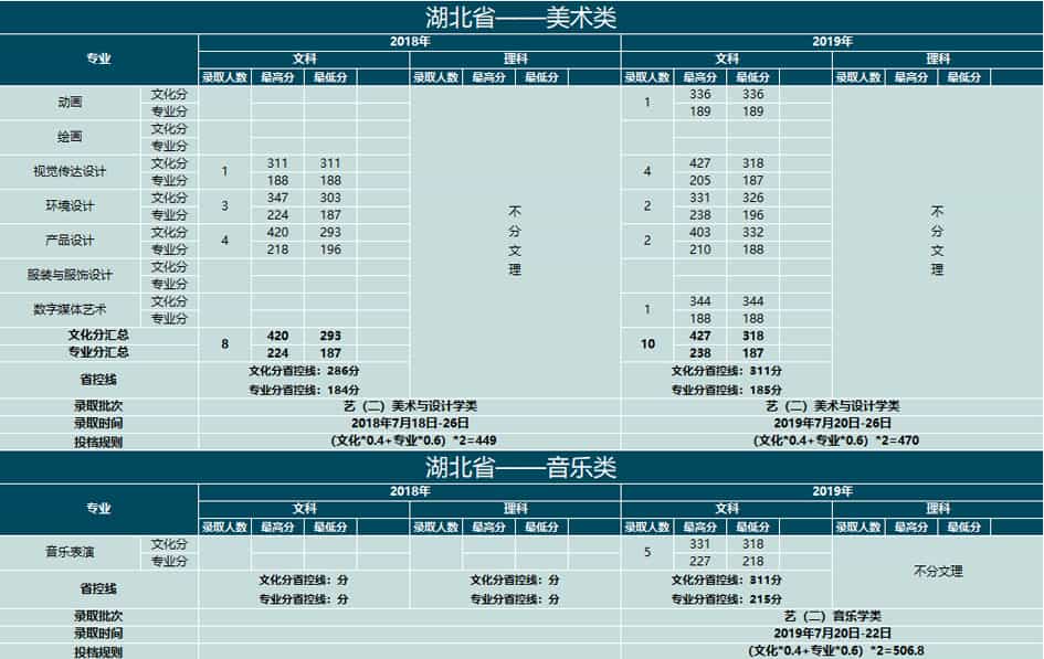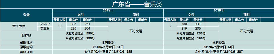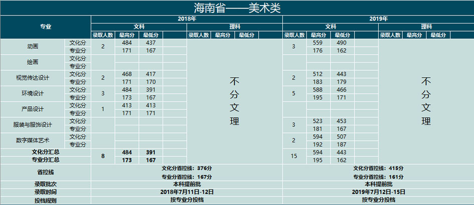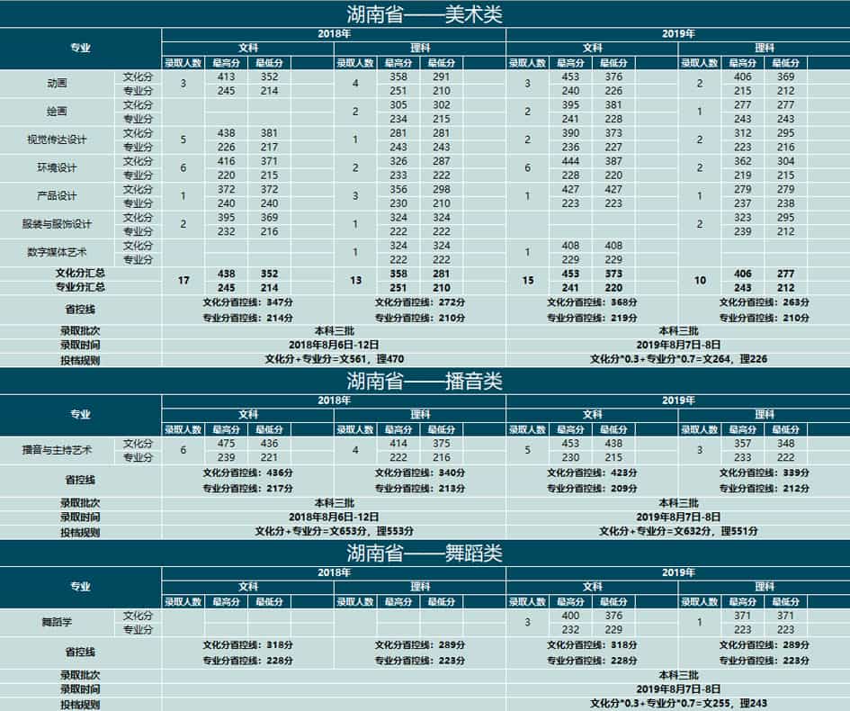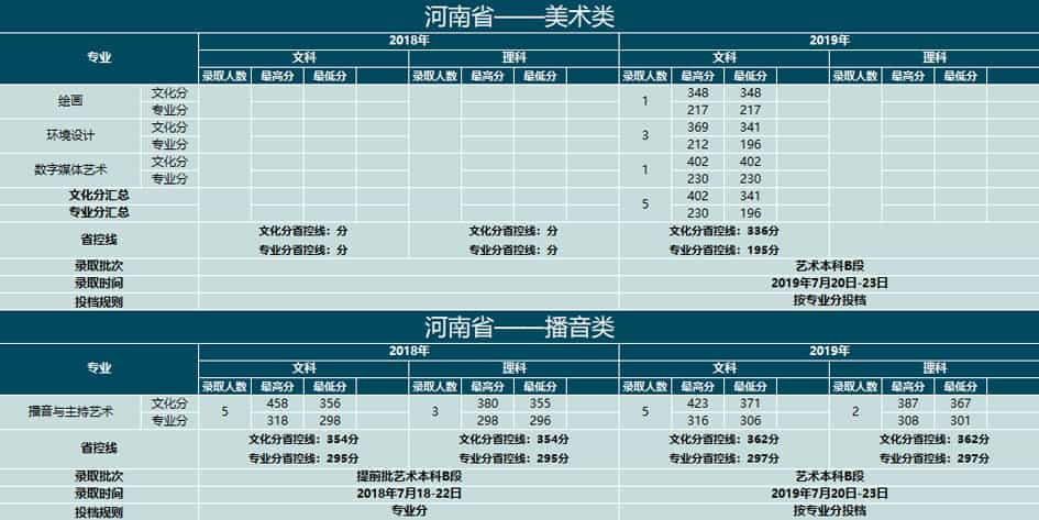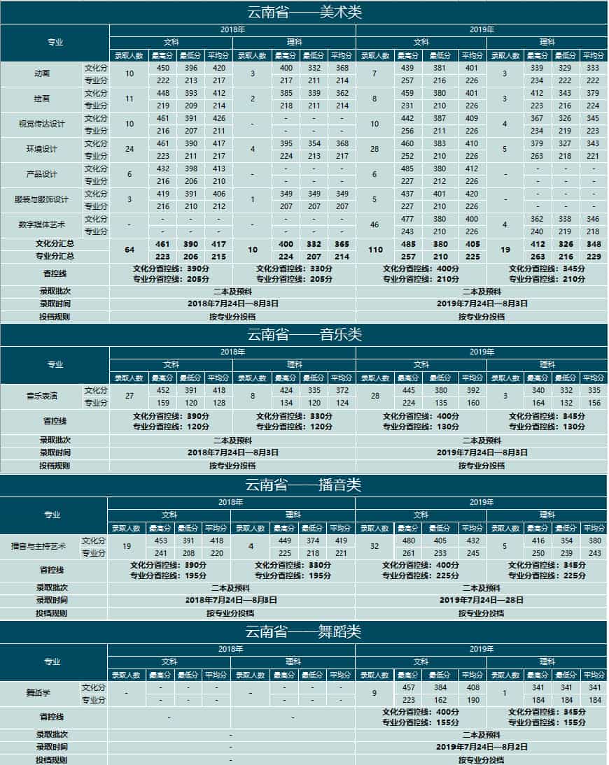云南大学滇池学院2018-2019年艺术类本科专业录取分数线