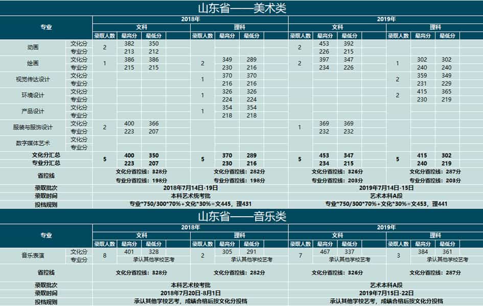 山东工艺美术学院2020年艺术本科录取分数线