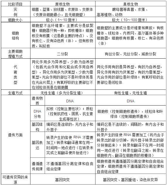 原核生物与真核生物的区别表格