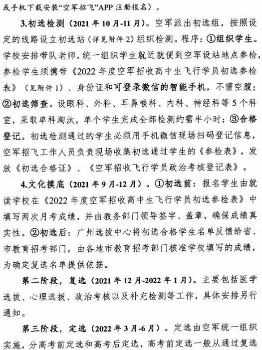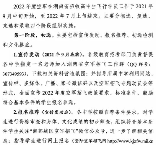 湖南关于2022年度空军在湖南省招收高中生飞行学员工作安排已经公布,下面是详细信息,来看一下吧!