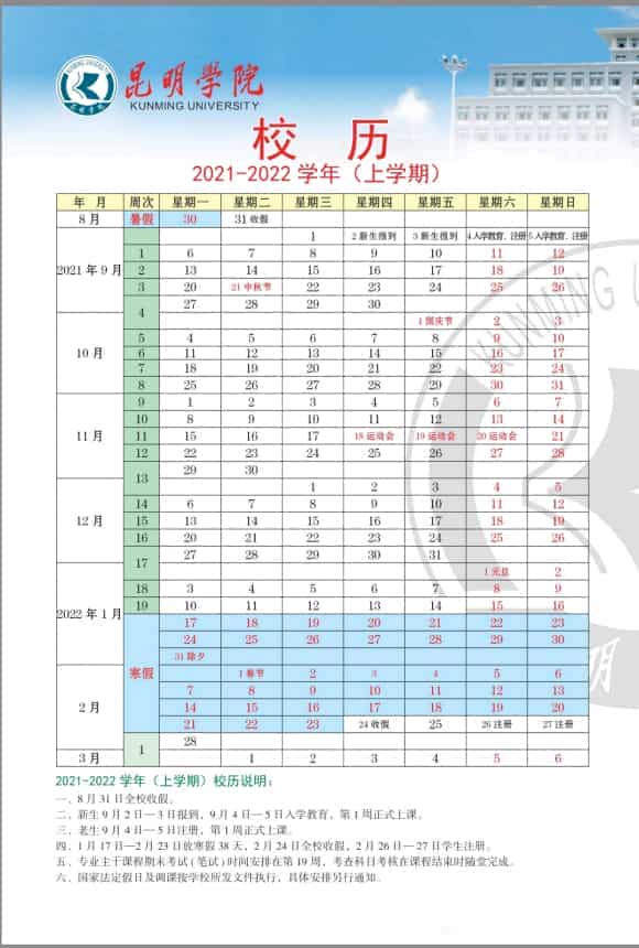 2022年昆明学院寒假放假时间 哪天开始放假