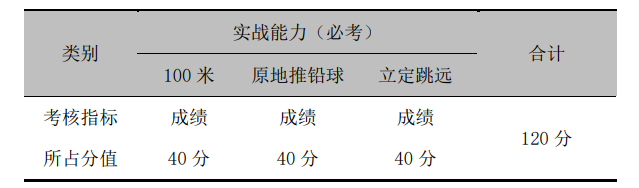 一、身体素质考试项目(考生必考项目,120 分)