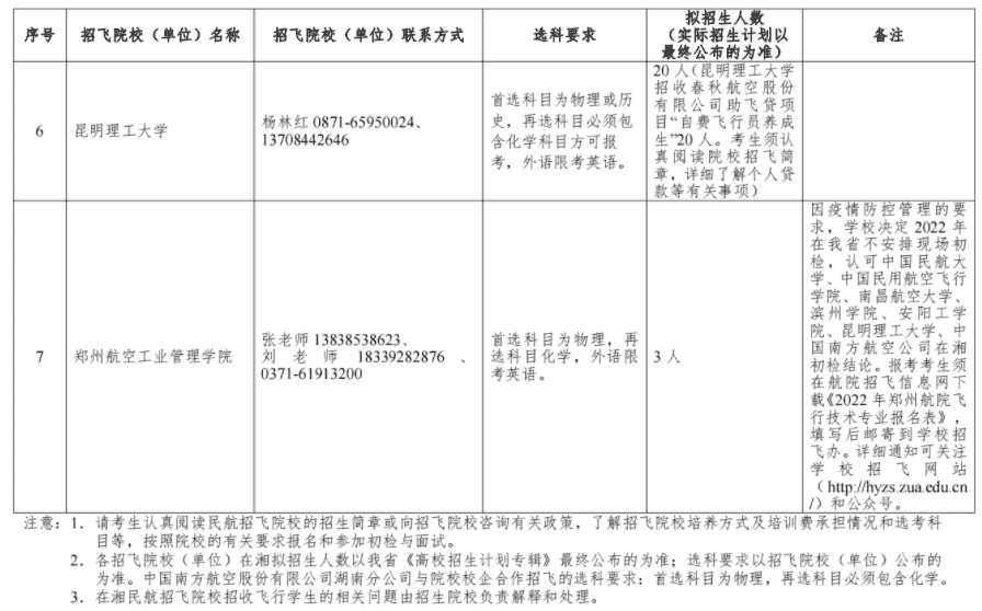 湖南2022民航招飞各院校选科要求 要求选哪些科目