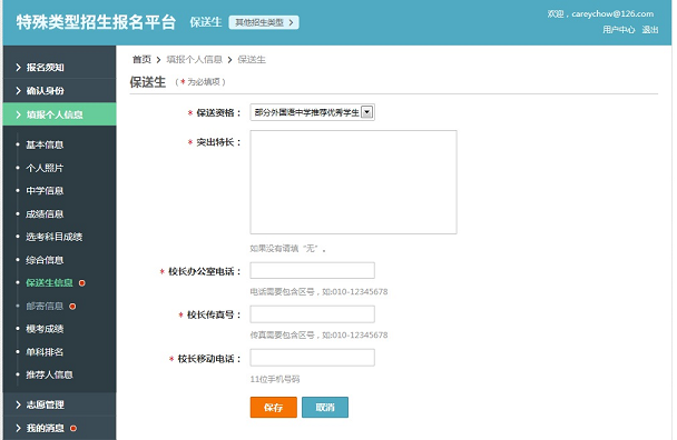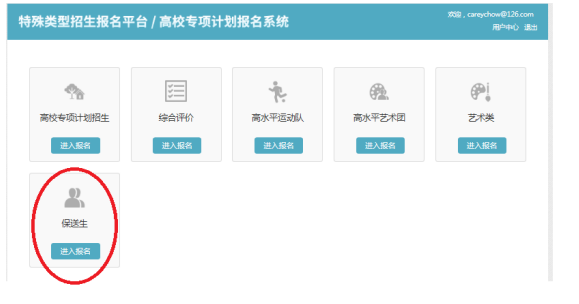 请牢记自己的用户名和密码,注册好后登录系统,选择保送生进入报名