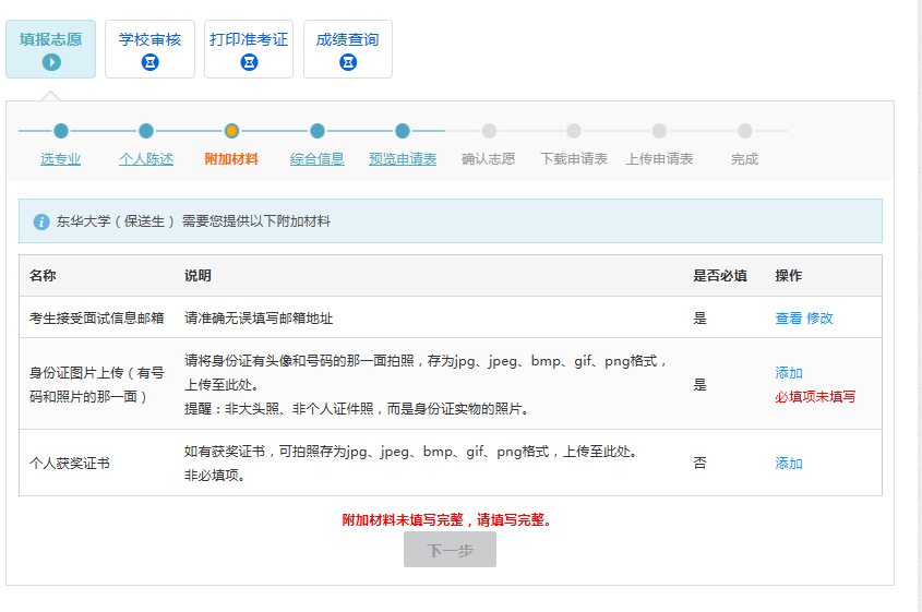 下一步预览报名表后确认志愿,请仔细核对每一项填报信息是否真实有效,一旦确认将不能再次修改。
