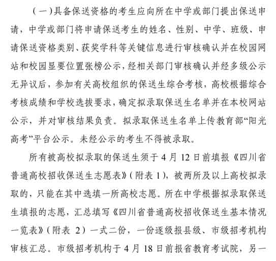 2022四川保送生录取程序 怎么录取