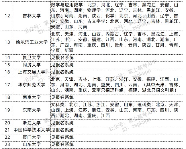 2022年浙江大学将进行强基计划招生,招生省份详见报名系统。符合2022年全国普通高等学校招生全国统一考试报名条件,综合素质优秀或基础学科拔尖,有志于将来从事相关领域科学技术工作的优秀高中毕业生均可报名。