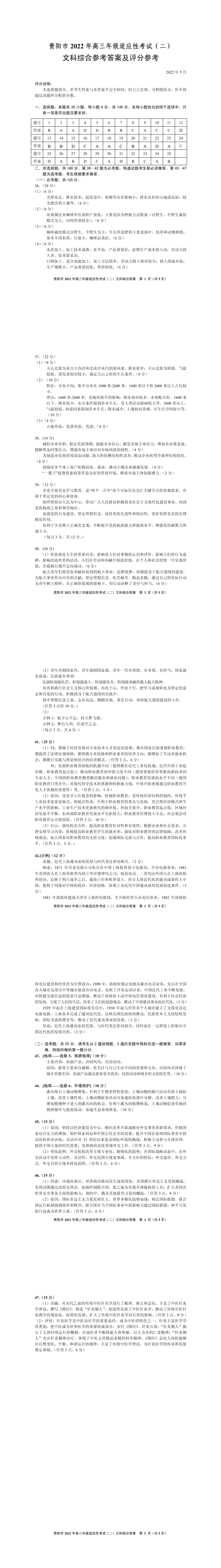 二模:贵阳市2022年高三适应性考试(二)文科综合参考答案及评分建议