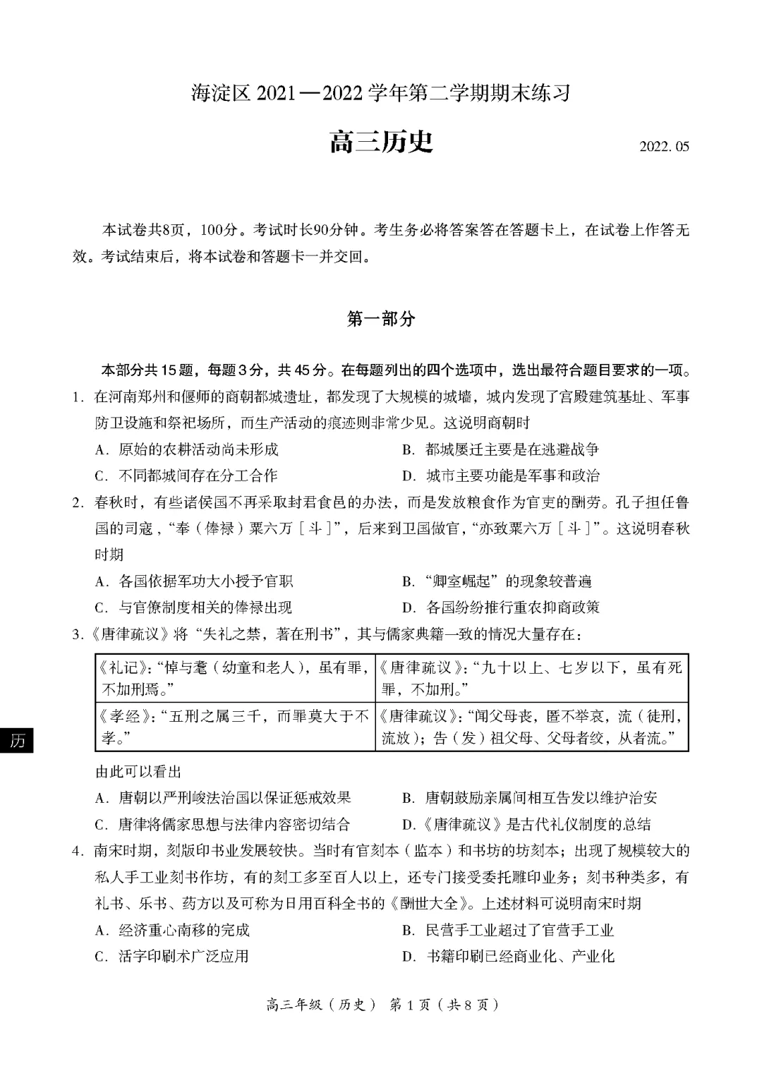 北京交大附中2023年高一上学期期中考历史试题及答案
