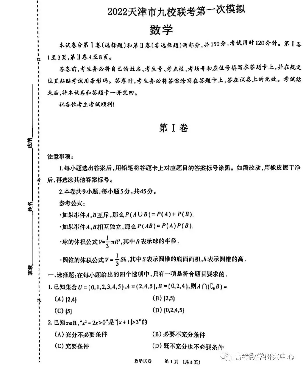 天津市第45中学2020-2021学年高三上学期第一次月考数学试题和答案