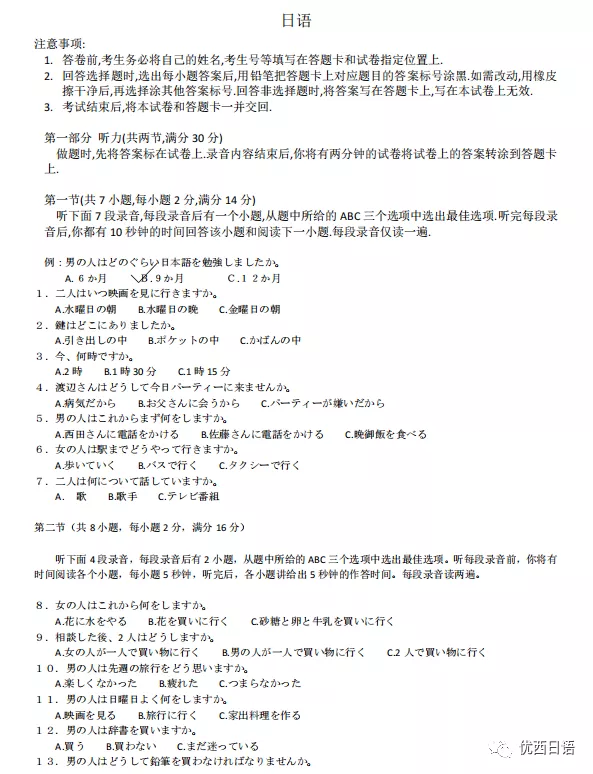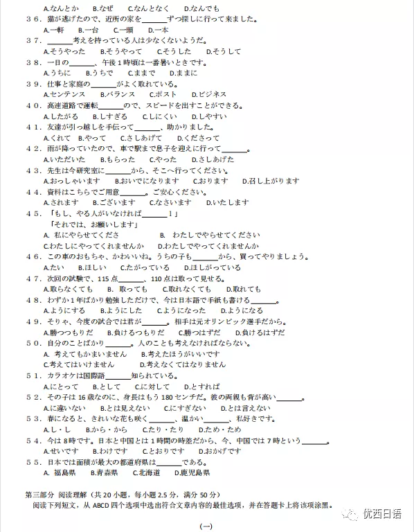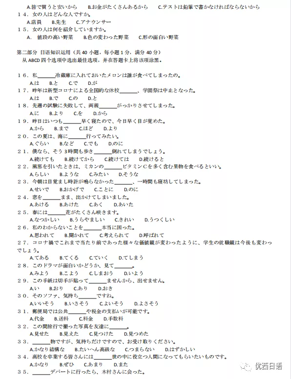 2022年5月福建省泉州市高三第五次质量检测日语试卷及答案