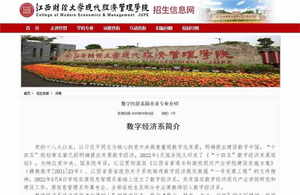 江西财经大学现代经济管理学院数字经济系简介及专业介绍