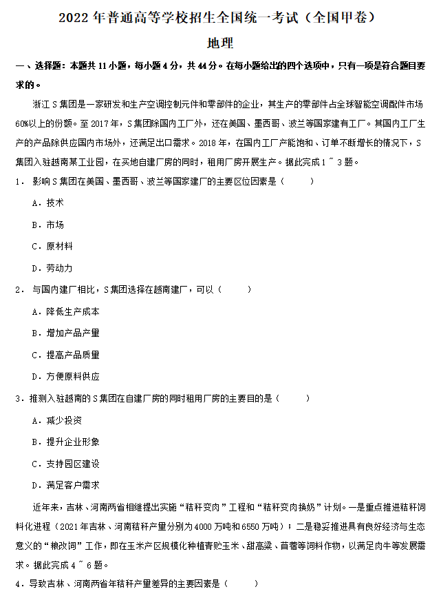 目前,2022年高考全国甲卷文综试卷待高考试题公布后,本站会第一时间更新2022高考全国甲卷文综试卷,供广大考生及家长对照、估分、模拟使用。