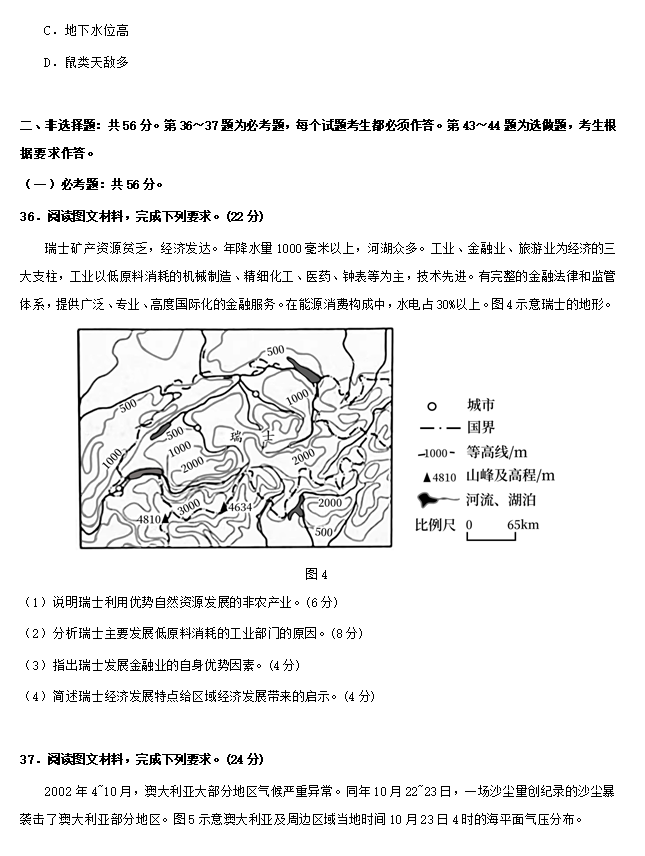 2022年高考全国甲卷文综真题试卷及答案(地理部分)