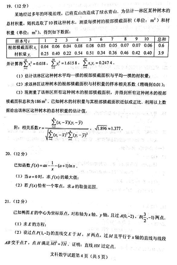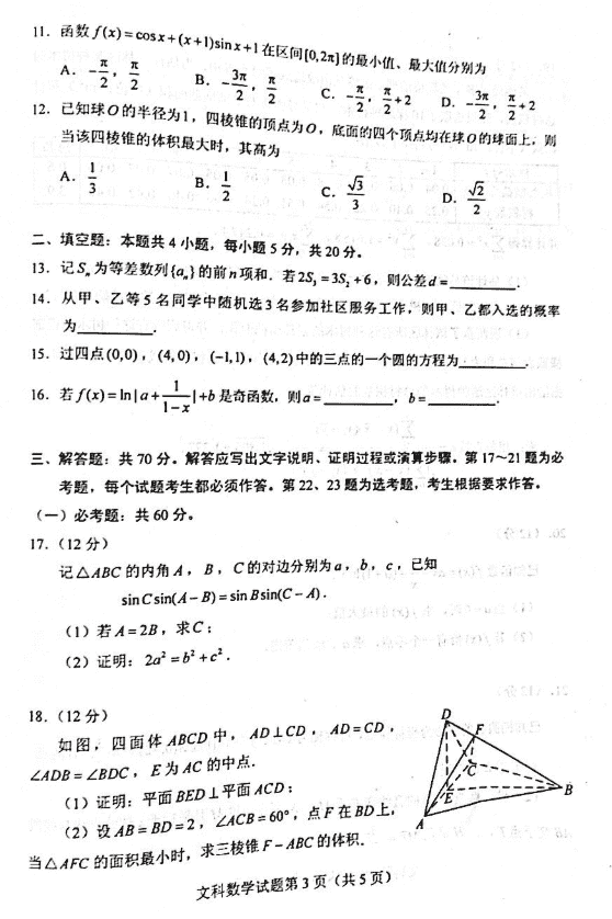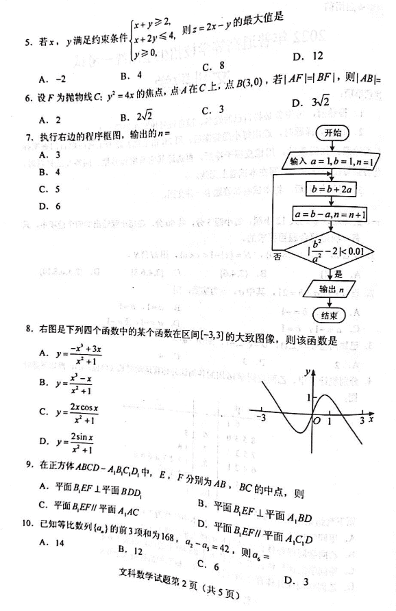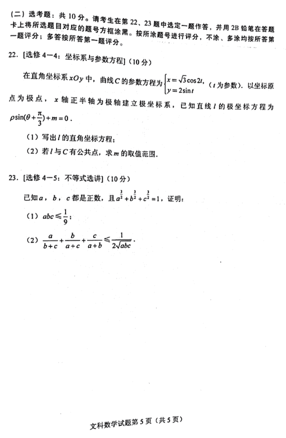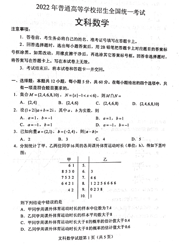 2022年高考全国乙卷数学(文)试卷真题与答案解析