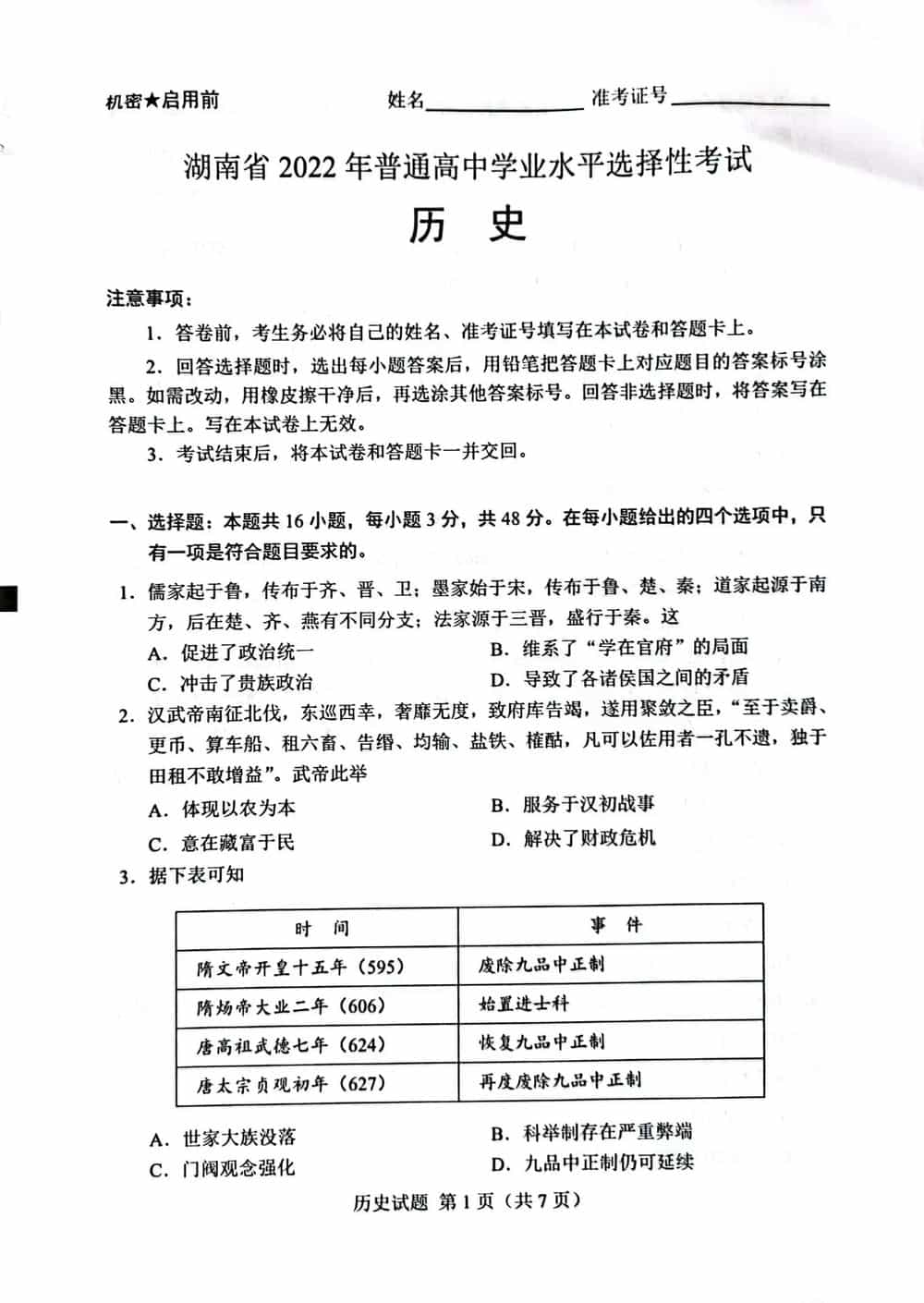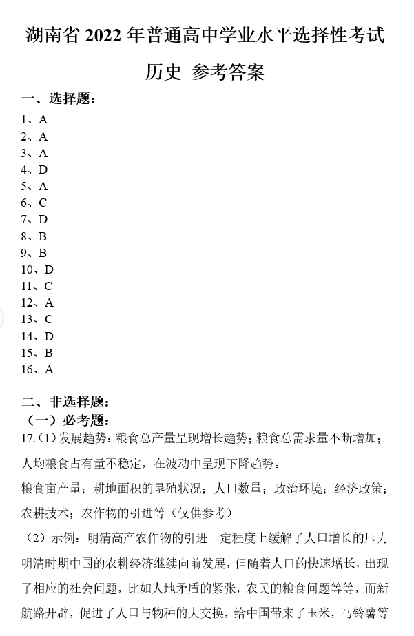 目前,2022年湖南高考历史试卷待高考试题公布后,本站会第一时间更新2022湖南高考历史试卷,供广大考生及家长对照、估分、模拟使用。