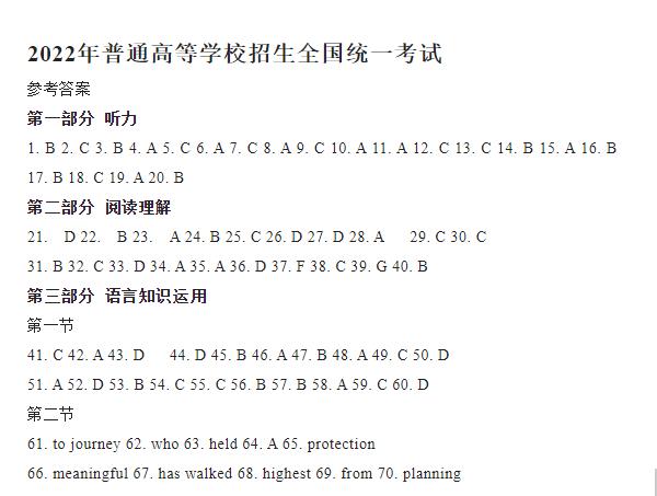 2022年高考全国甲卷英语试卷答案解析