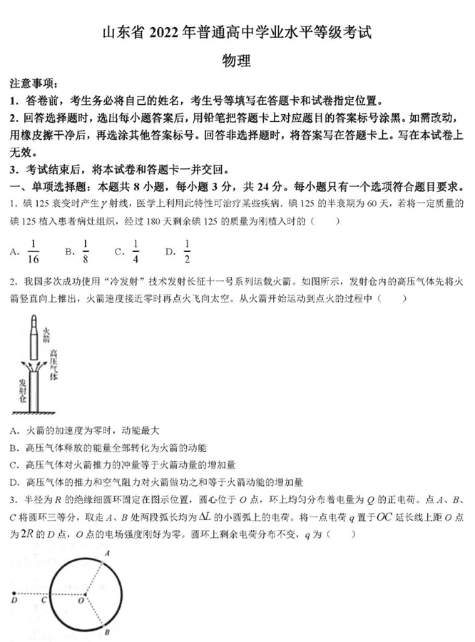 2022年山东高考物理试卷使用是本省命题卷,试题已公布,答案暂未公开,待高考试题公布后,本站会第一时间更新2022山东高考物理试卷与答案,供广大考生及家长对照、估分、模拟使用。