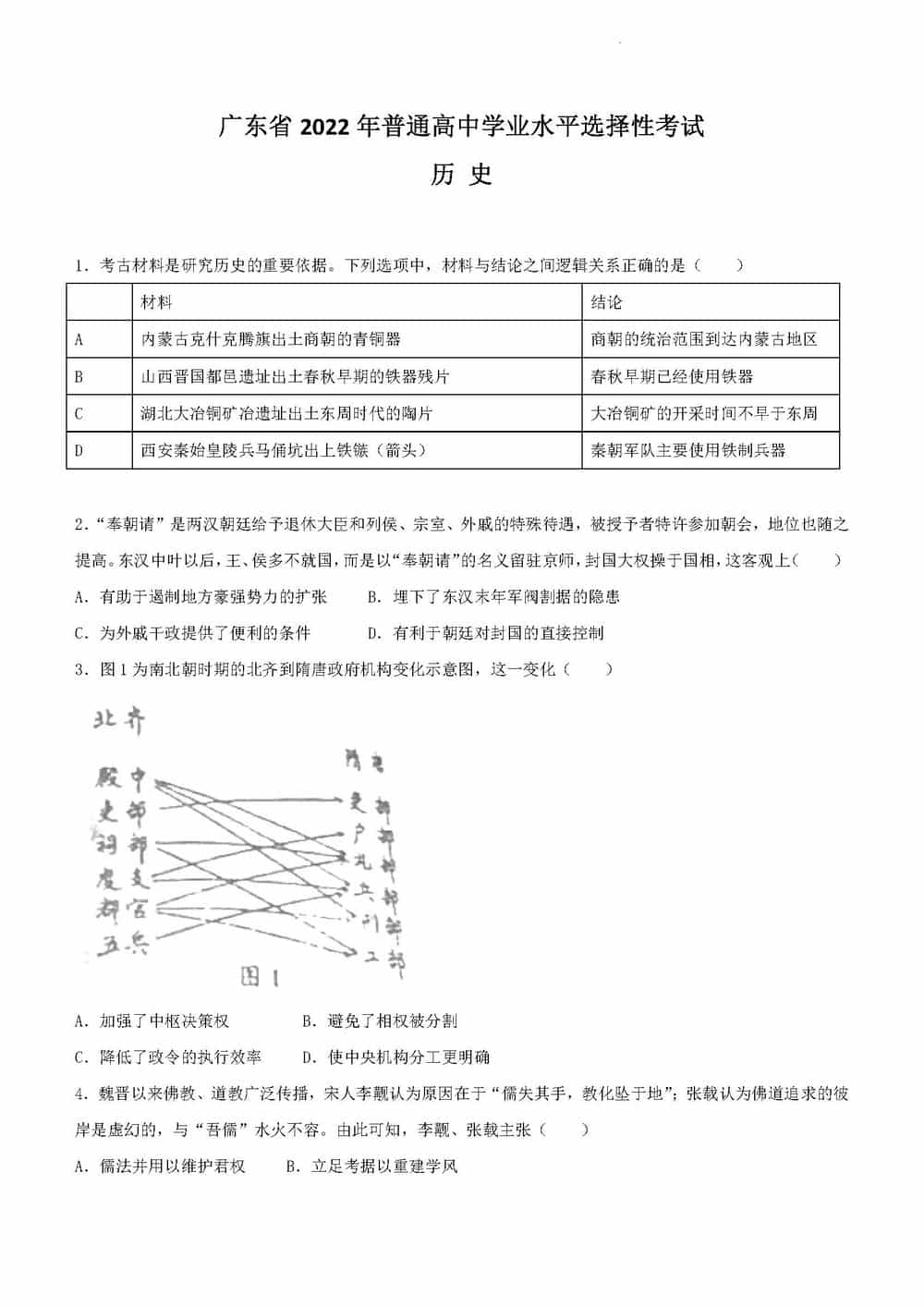 2022年广东高考历史真题试卷