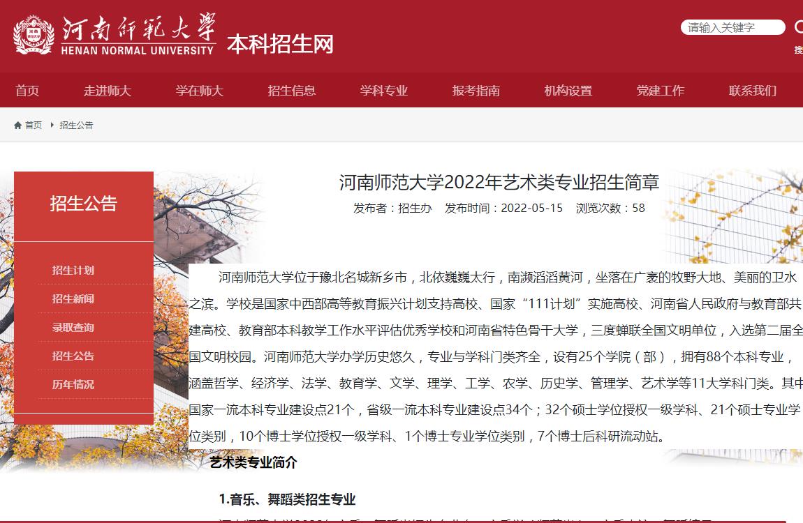 河南师范大学2022年音乐、舞蹈类招生专业有:音乐学(师范类)、音乐表演、舞蹈编导。