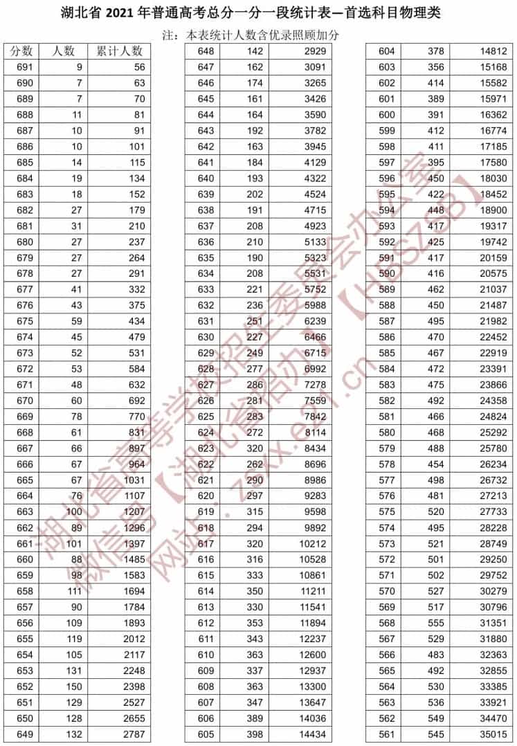 下面为同学们整理出2021年湖北高考一分一段统计表,以做为对比和参考。