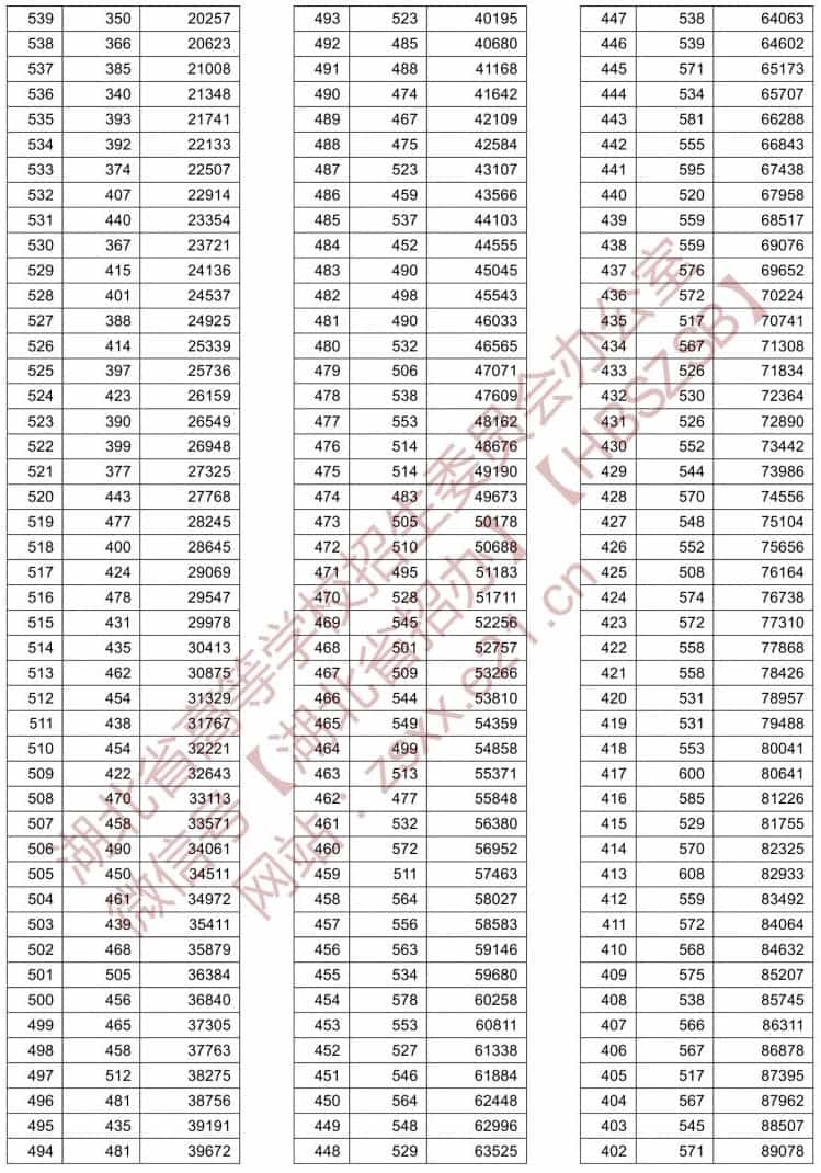 2022湖北省高考成绩总分一分一段统计排名汇总表(历史+物理)