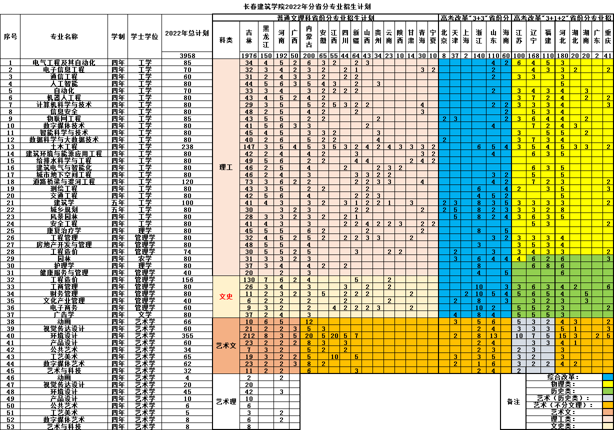 2022年长春建筑学院各省招生计划及招生人数