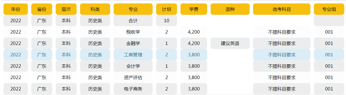 2022年吉林工商学院在北京招生计划中金融学专业招生1人,资产评估专业招生1人,在天津招生计划中金融学专业招生2人、人力资源管理专业招生2人,在上海招生计划中金融学专业招生2人、资产评估专业招生1人。