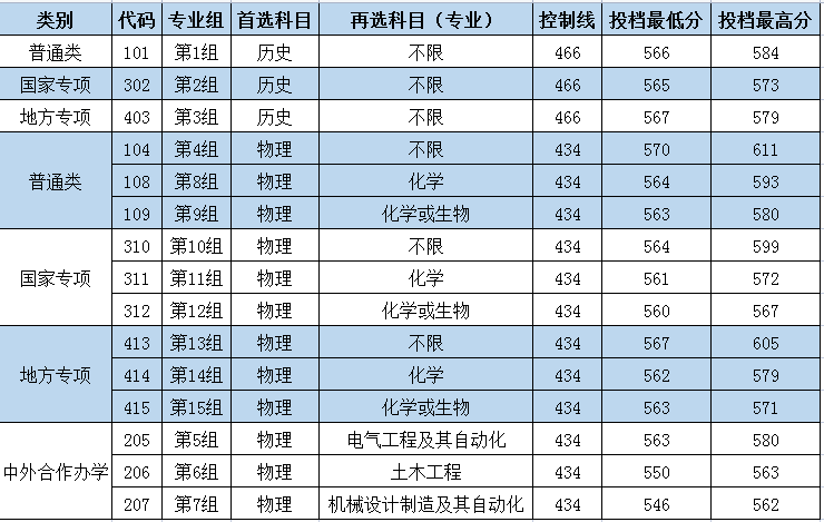 | 湖南省 | 普通类 | 物理+不限 | 434 | 570 | 611 | 578.61 |