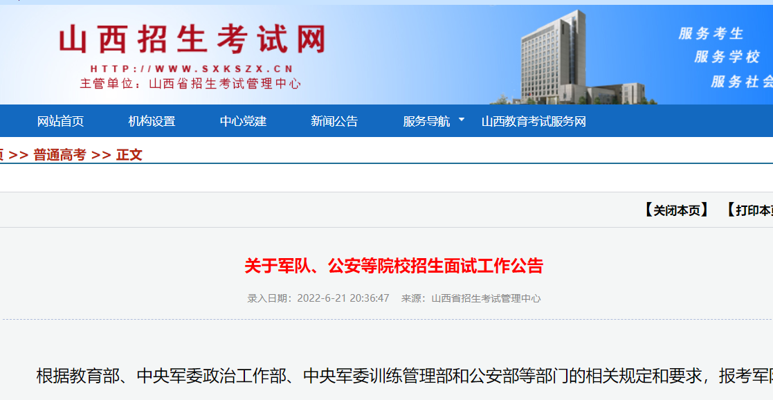 山西公布2022高考军队、公安院校面试和体检具体时间与地点安排