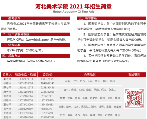 河北美术学院2021年招生简章