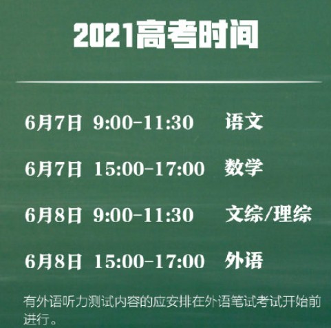 2021年高考时间确定 今年高考时间安排