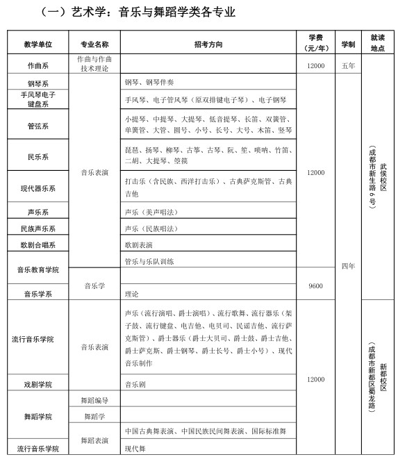 四川音乐学院2021年艺术类本科招生简介(非四川考生)