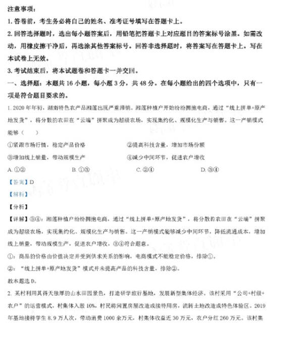 2021年八省联考政治湖南卷试题及答案 时间:2021-01-28 10:07 高中政治 2021年八省联考政治湖南卷试题已经公布,小编整理了相关信息,来看一下!2021年八省联考政治湖南卷试题2021年八省联考政治湖南卷试题答案