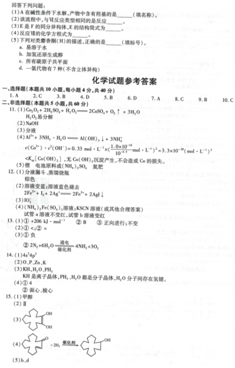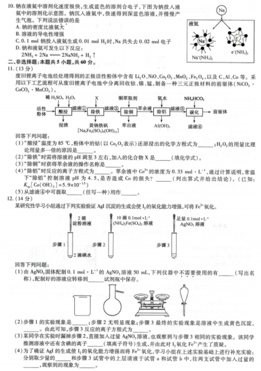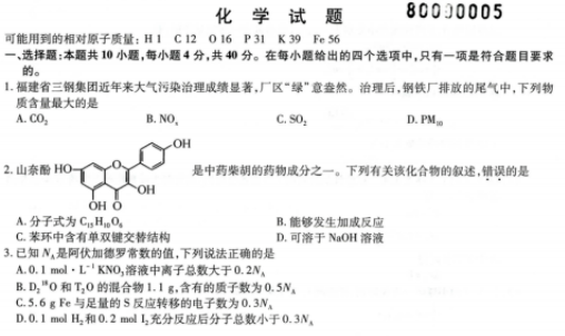 2021福建八省联考化学试题及答案