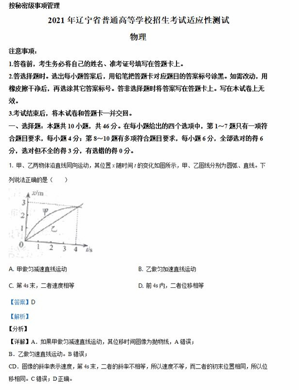2021辽宁八省联考物理试卷及答案解析 时间:2021-02-02 10:51 理综试题 根据新高考“3+1+2”的模式,辽宁八省联考物理卷由辽宁出题,现在物理考试结束,附整个考试和详细的参考答案!2021辽宁八省联考物理试卷及答案解析