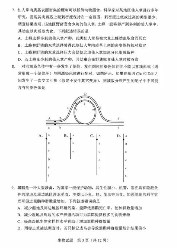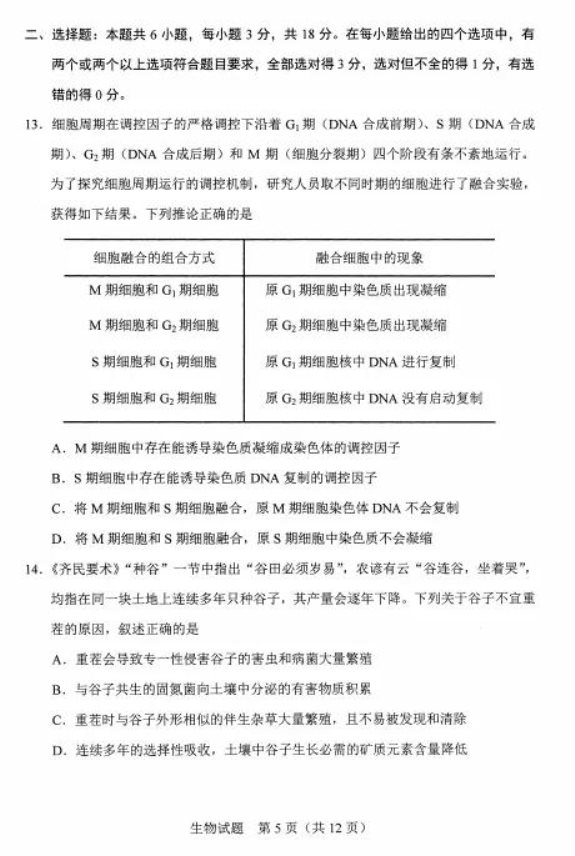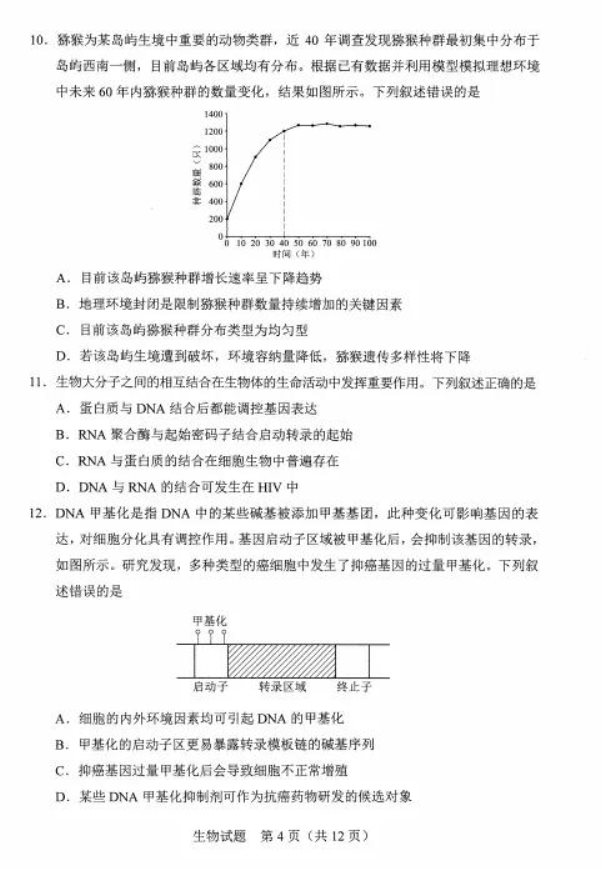 2021河北八省联考生物试卷及答案解析