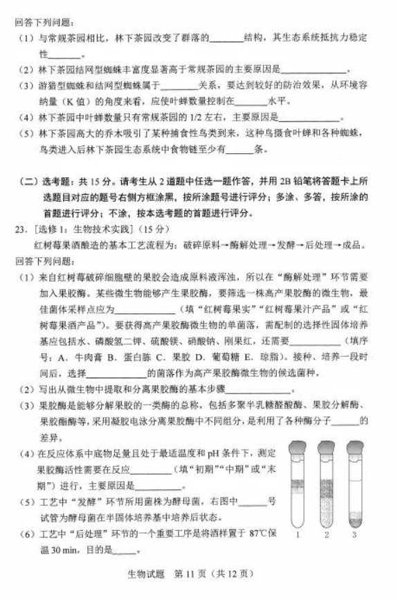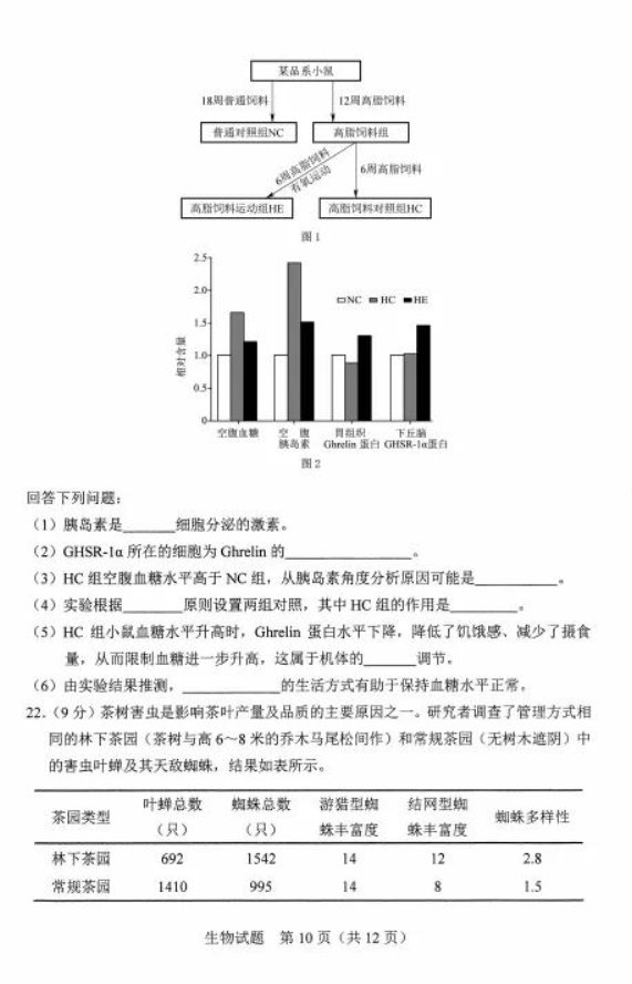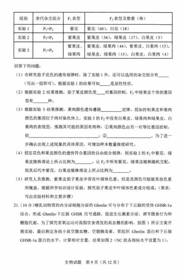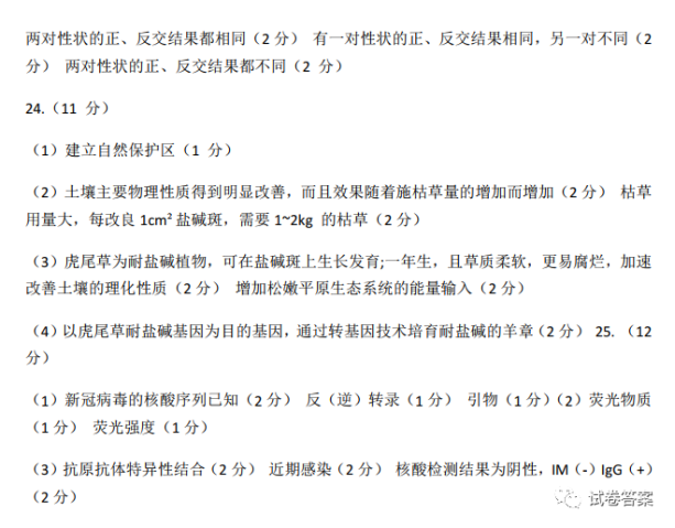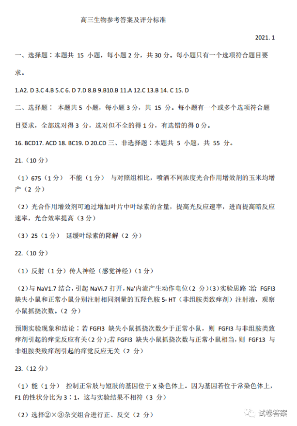2021河北八省联考生物答案