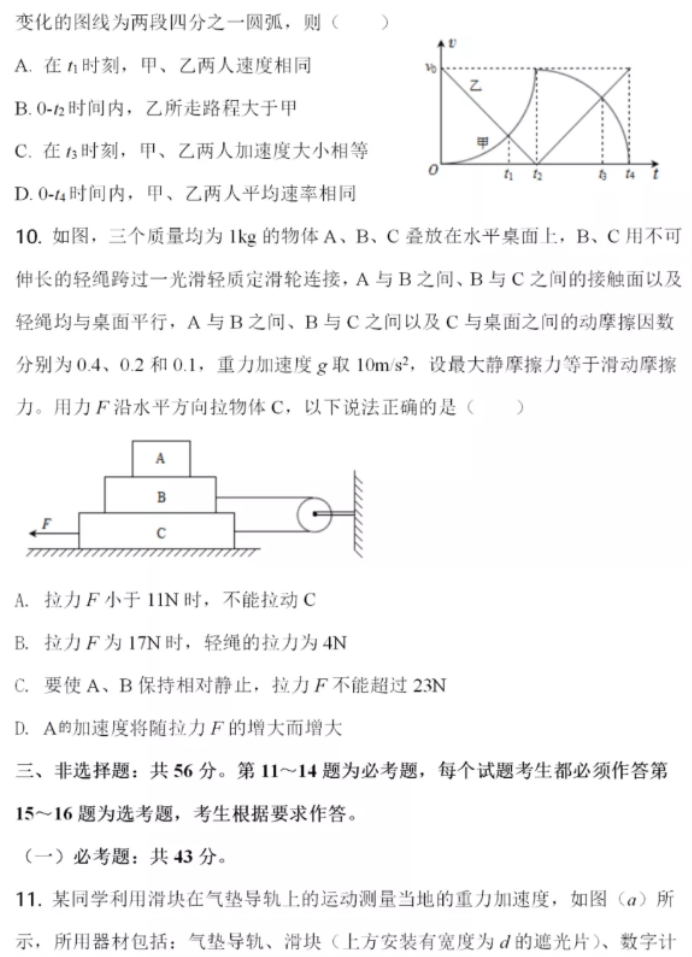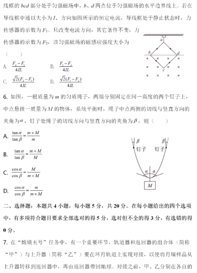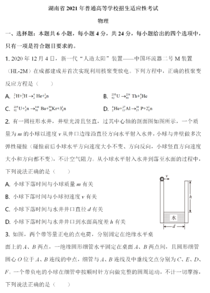 2021年八省联考湖南物理试题及答案