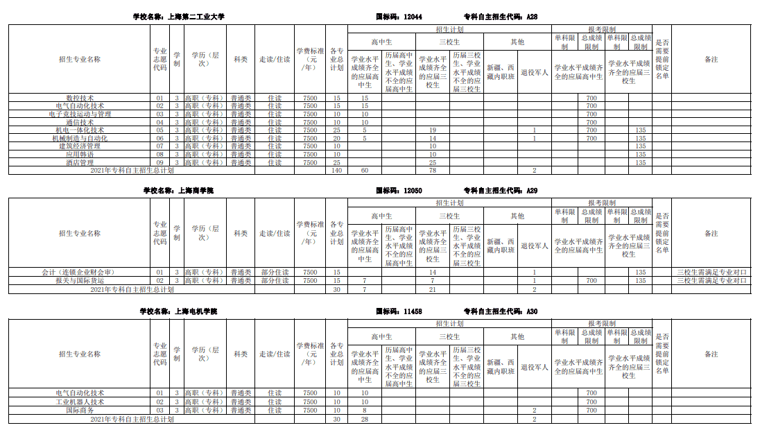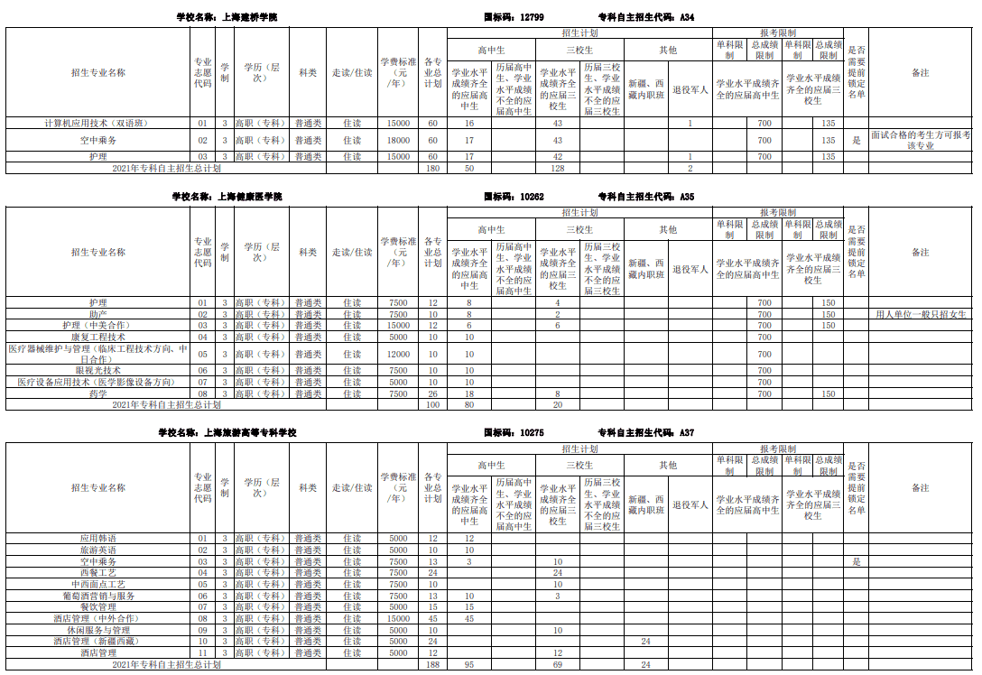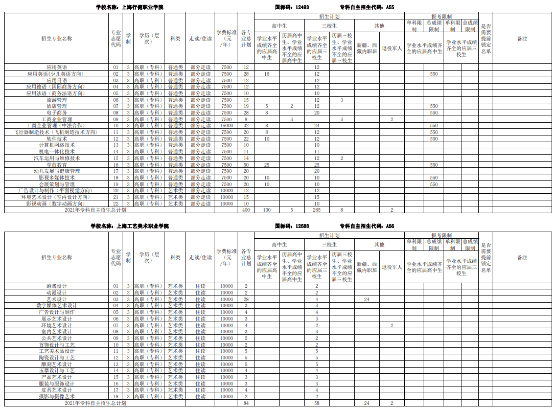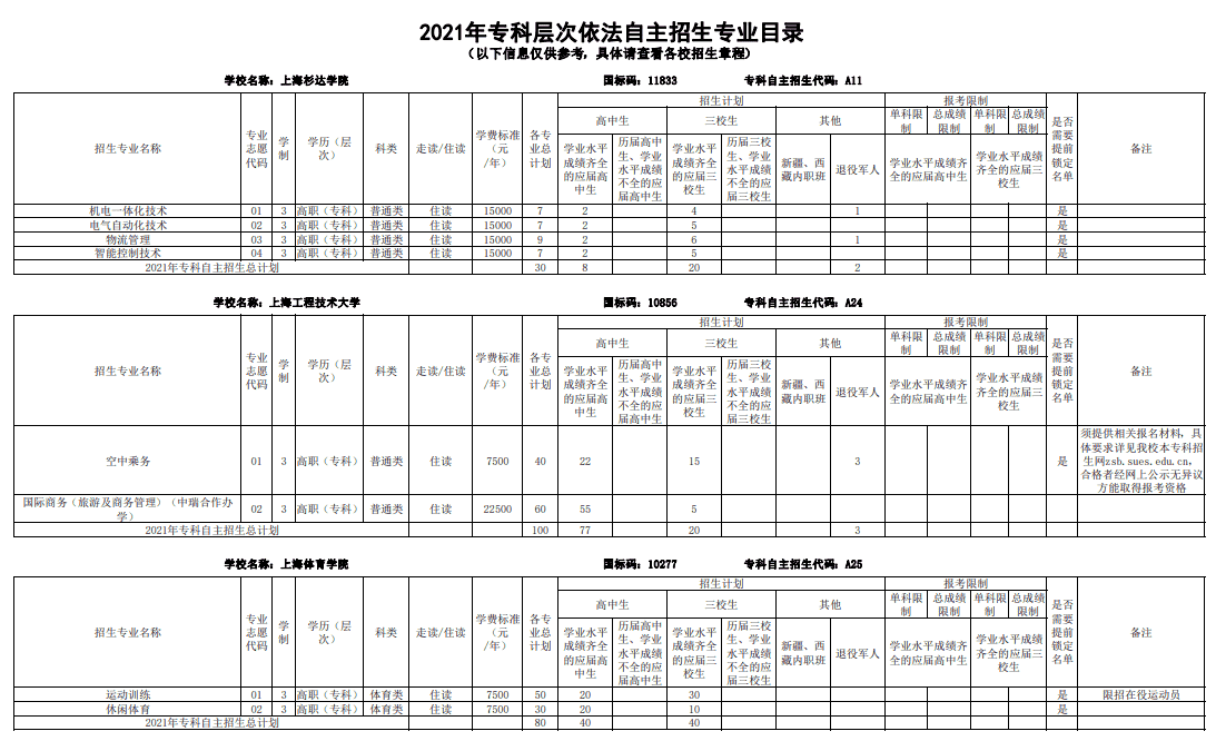 2021上海部分专科自主招生志愿填报