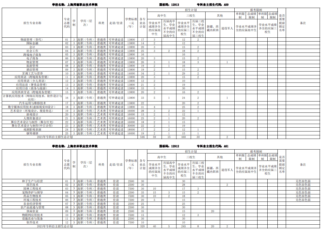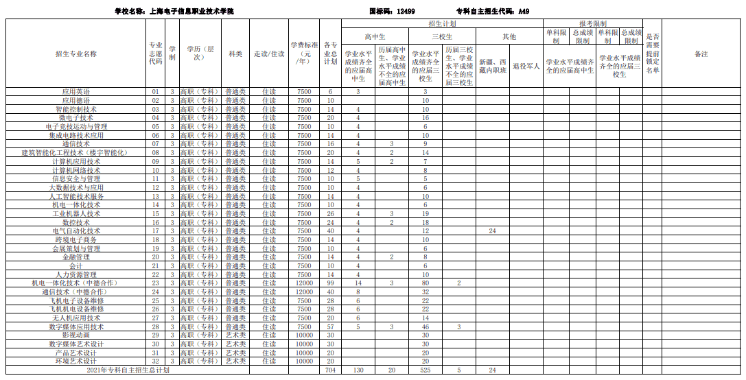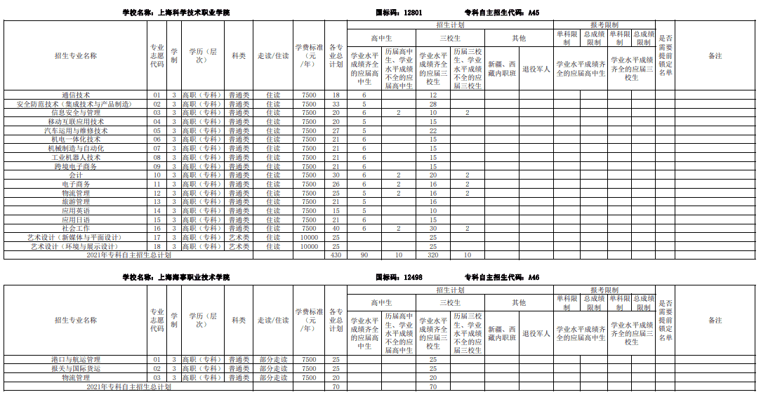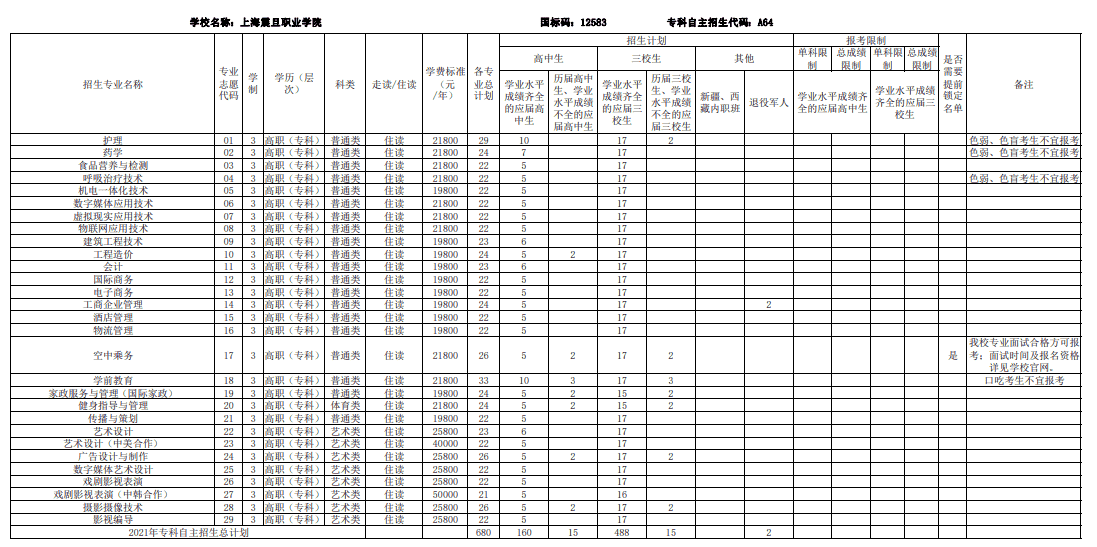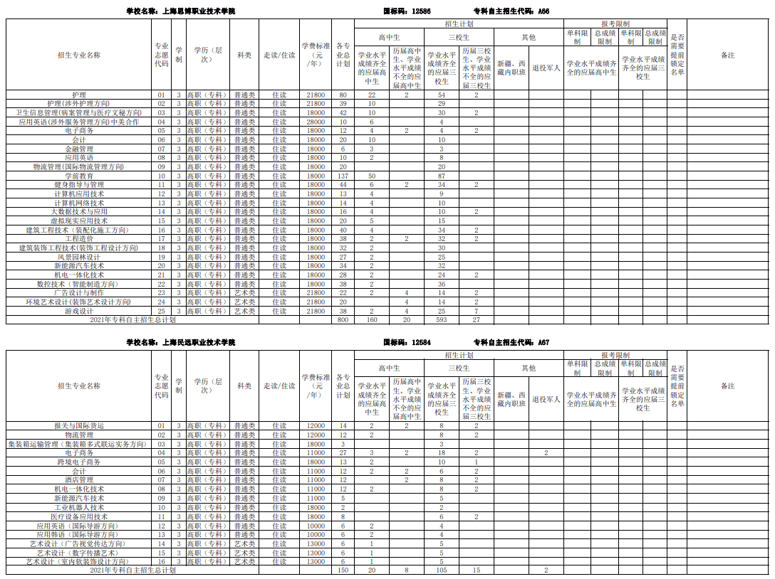 2021上海部分专科自主招生志愿填报
