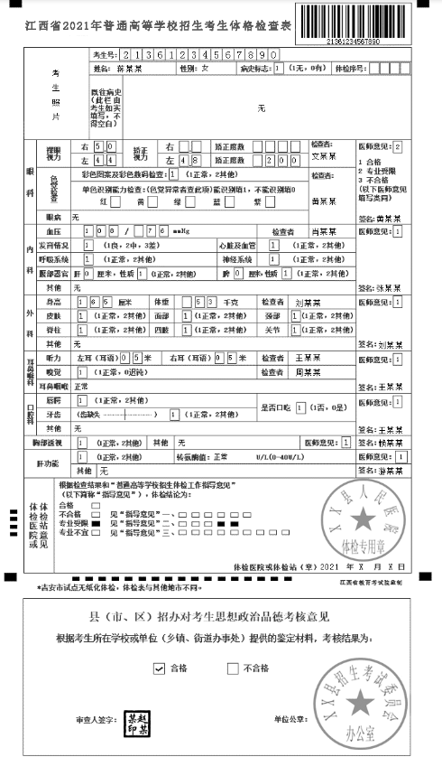所有参加江西省2021年普通高考报名(含高职单招等各类单独招生)的考生均须参加高考体检,未经高考体检的考生,高校可不予录取。