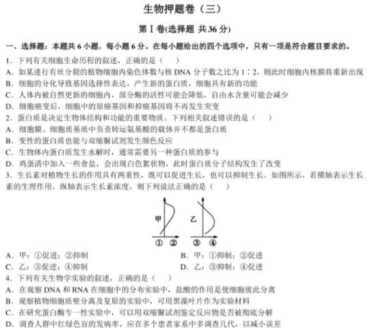 2020年全国高考理综生物押题试题(含答案)