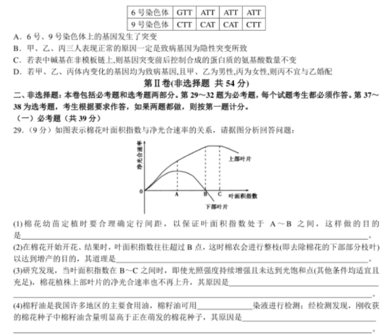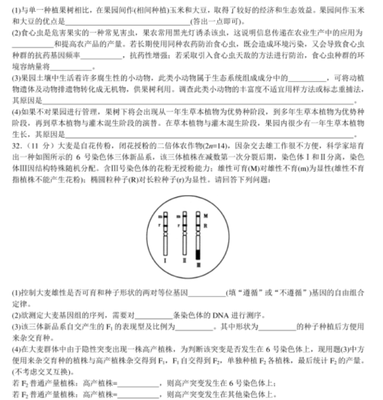 2022年高考全国甲卷理综试卷真题与答案解析