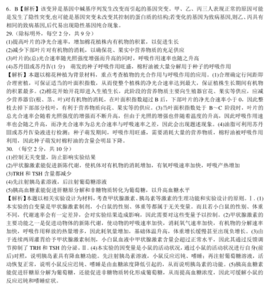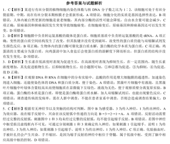 2021年全国乙卷理综真题答案解析