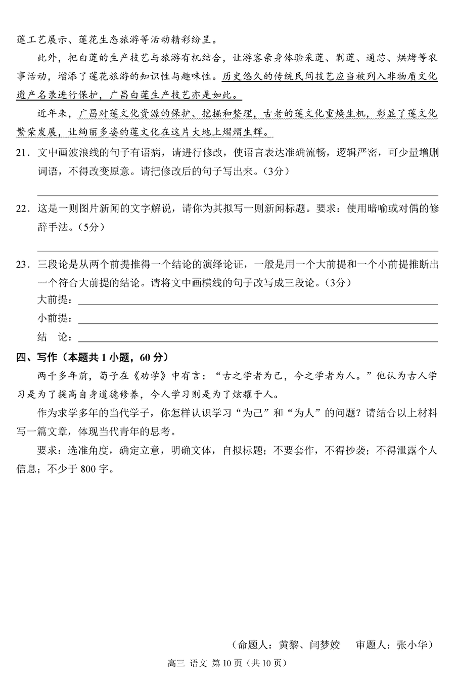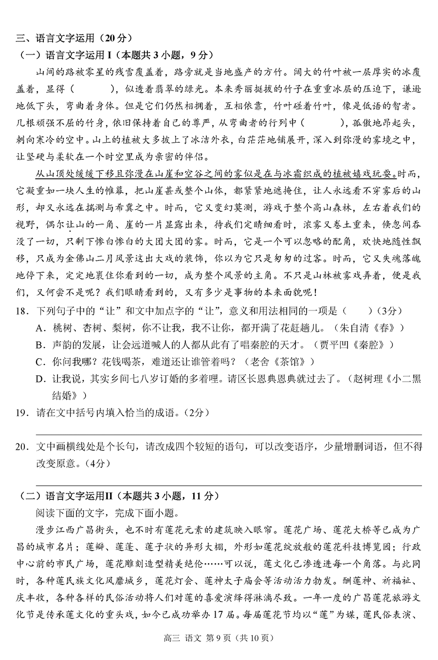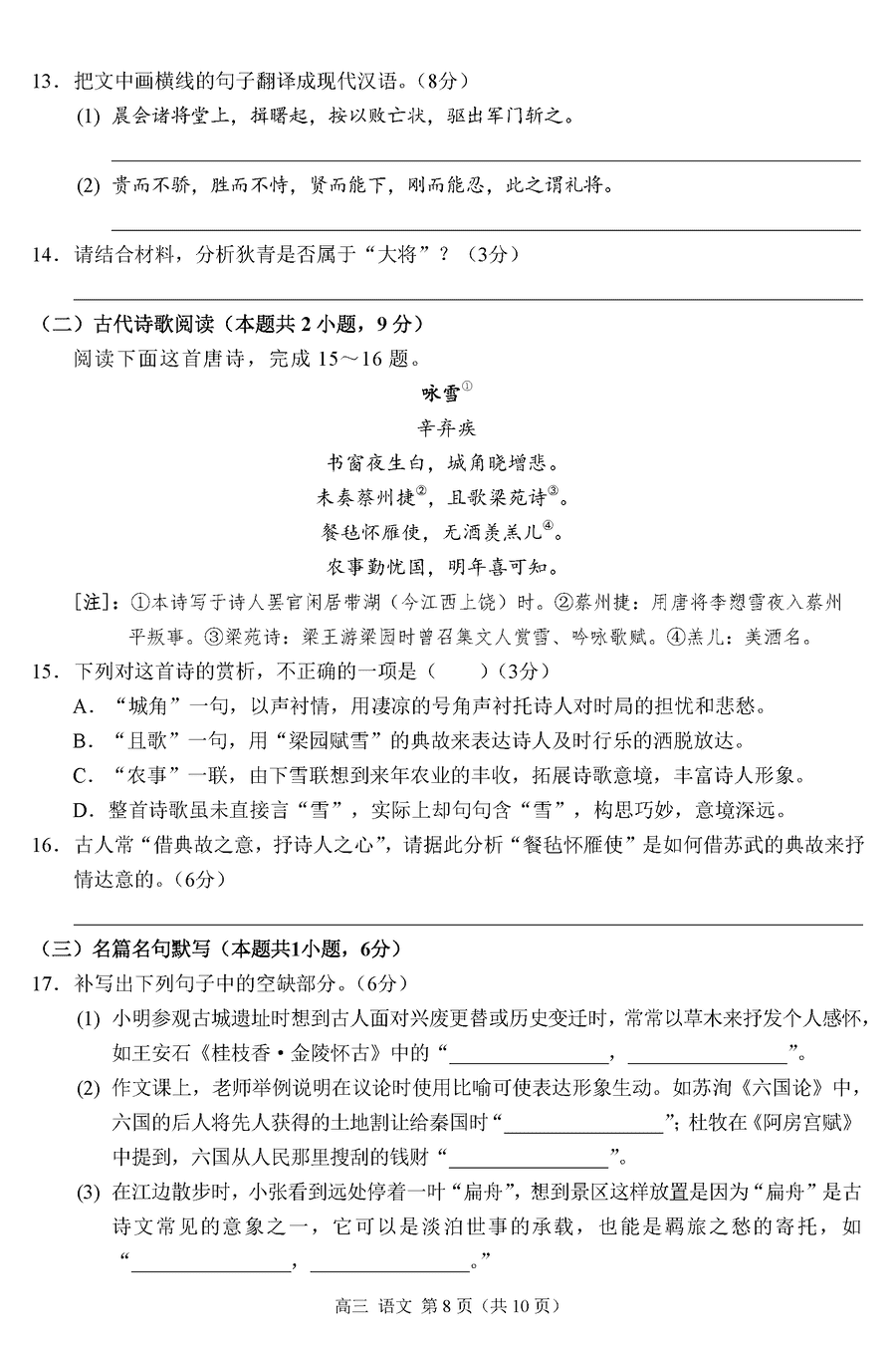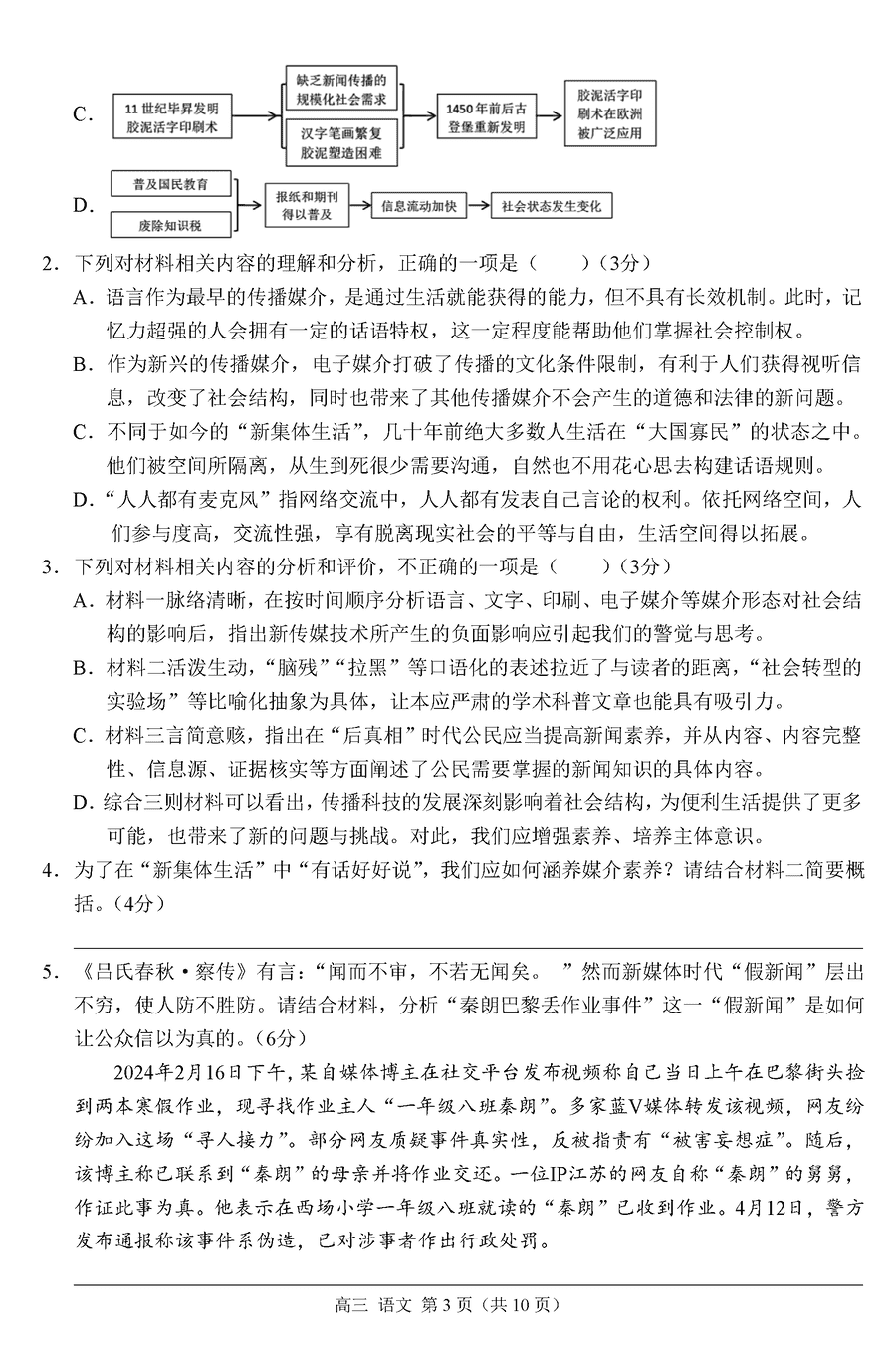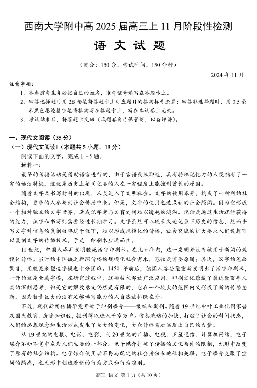 西南大学附中2025届高三上11月阶段性检测语文试题及答案