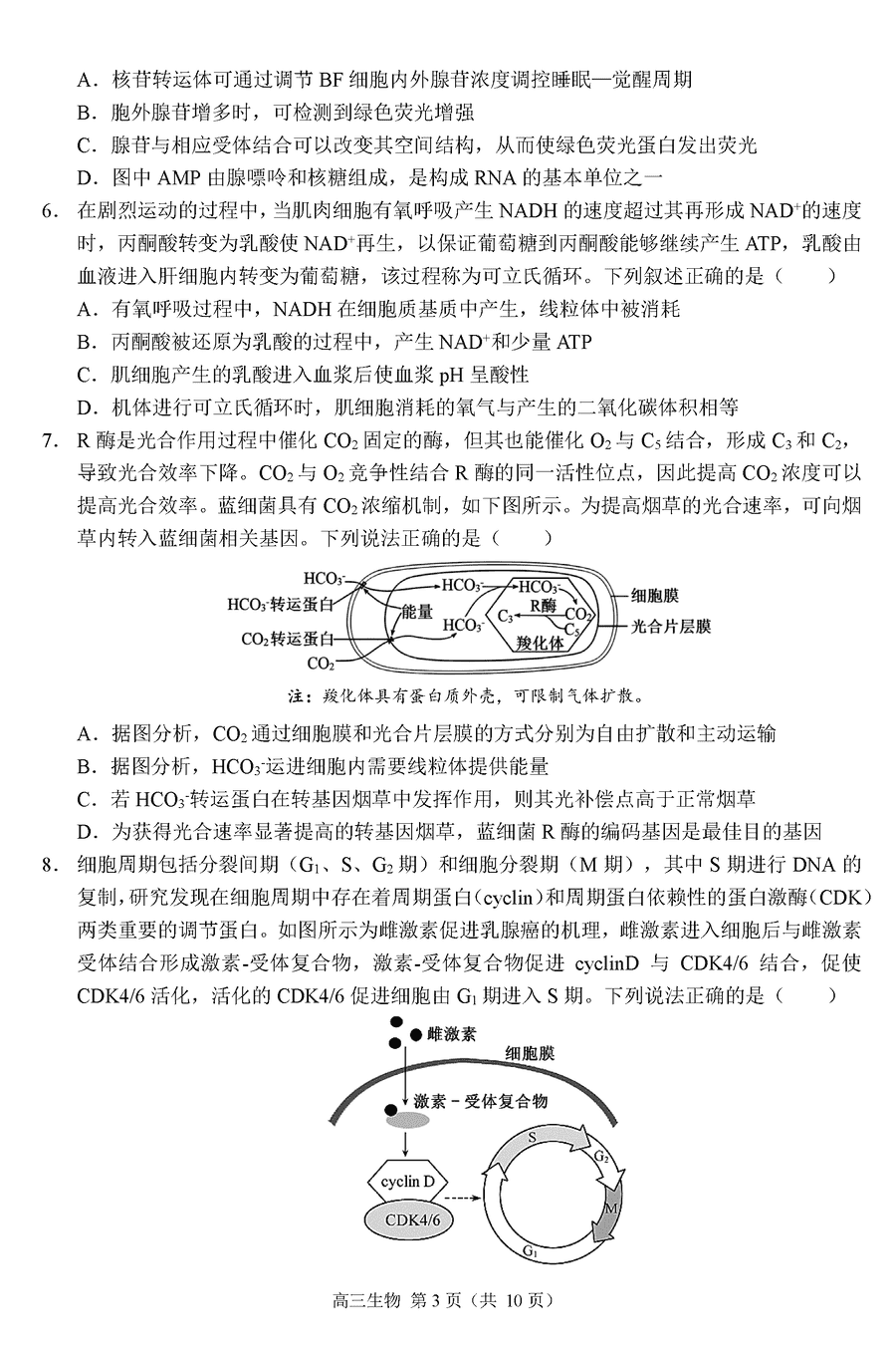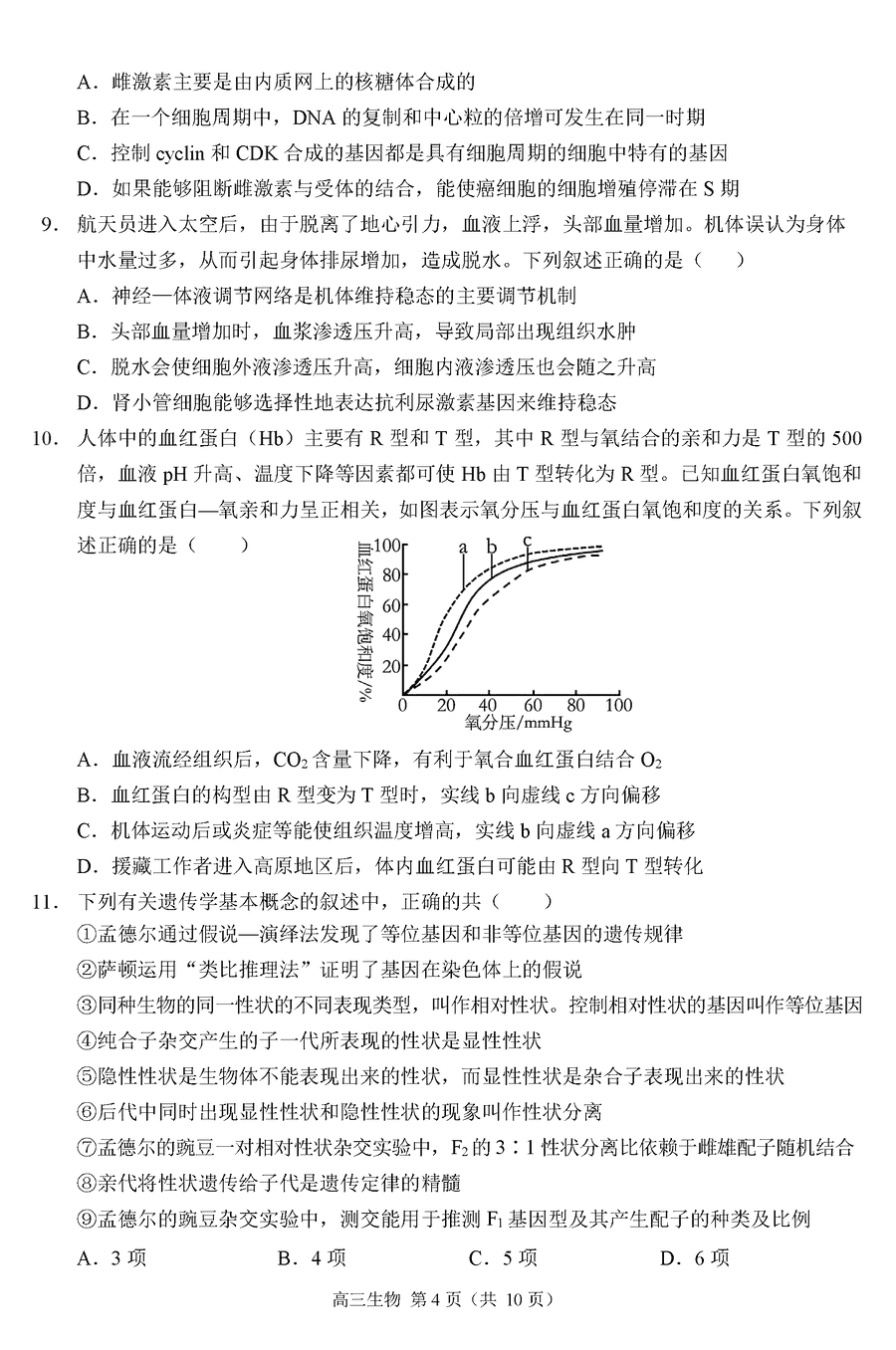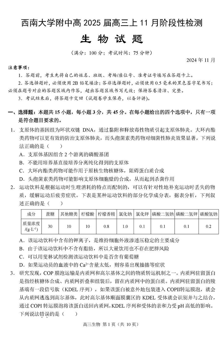 西南大学附中2025届高三上11月阶段性检测生物试题及答案