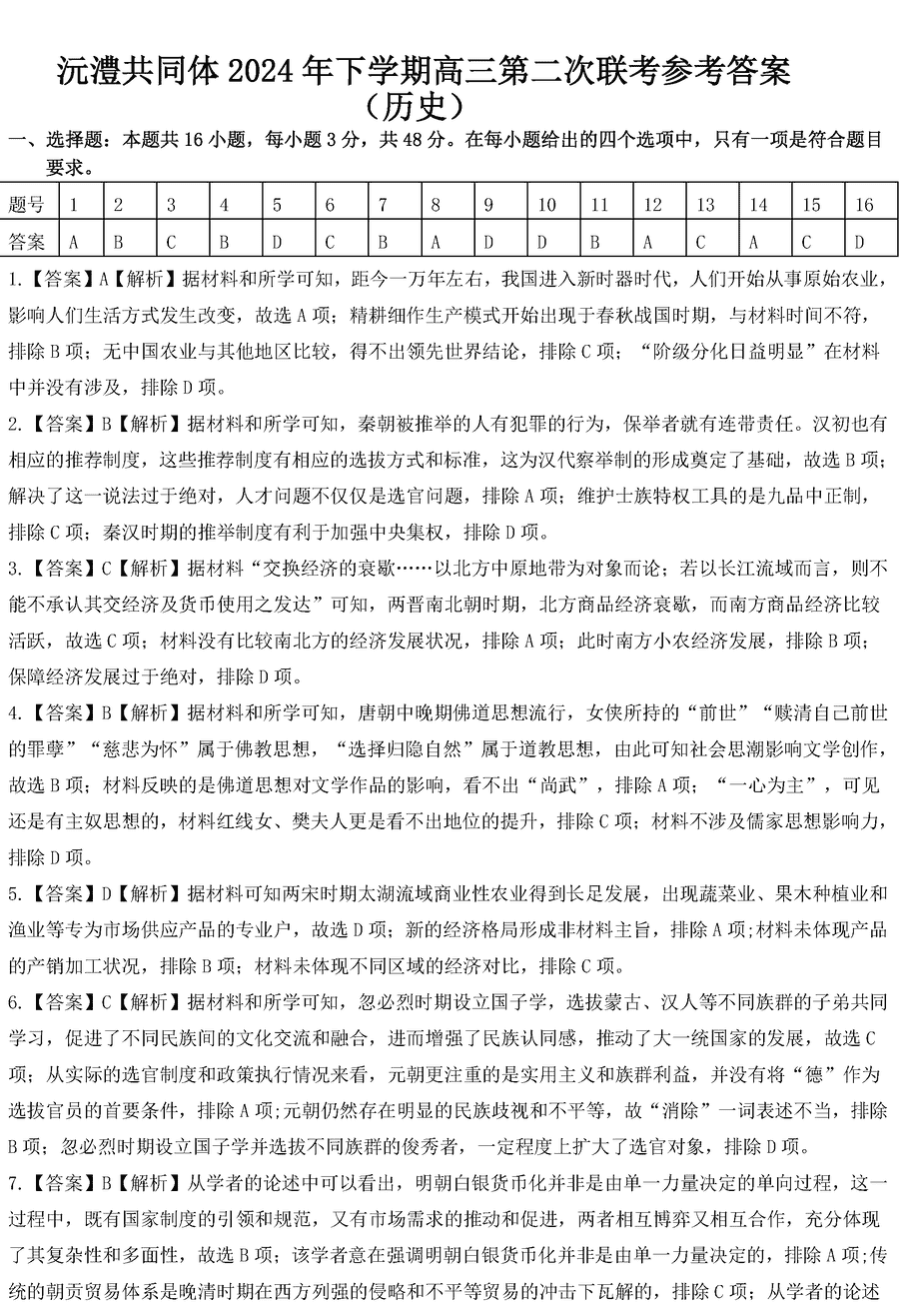 沅澧共同体2025届高三第二次联考历史考试已于近日开考,为方便考生考后及时查看考试情况,查漏补缺、弥补不足,本文整理了试题答案解析相关信息!